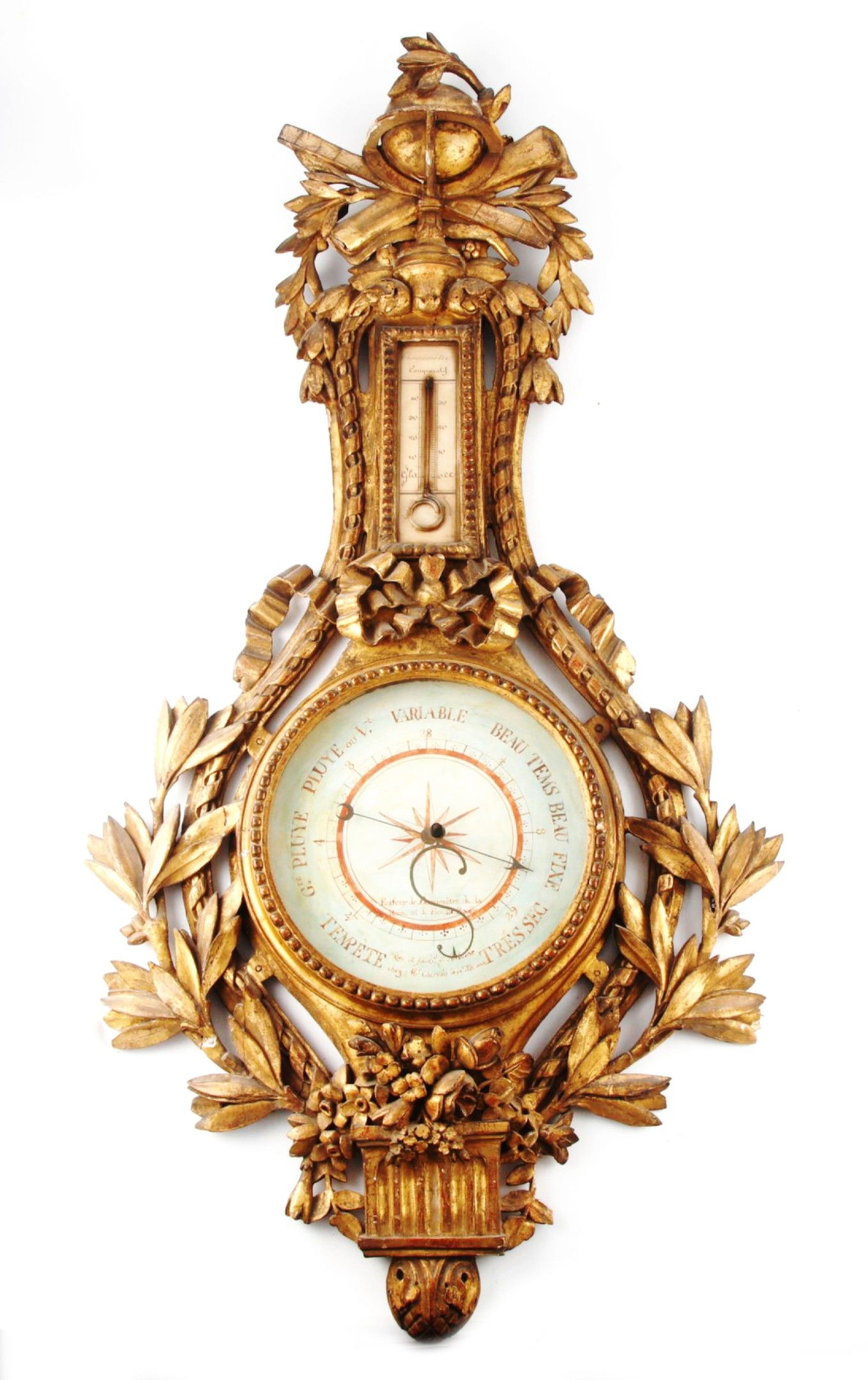 Baromètre - thermomètre en bois sculpté doré,