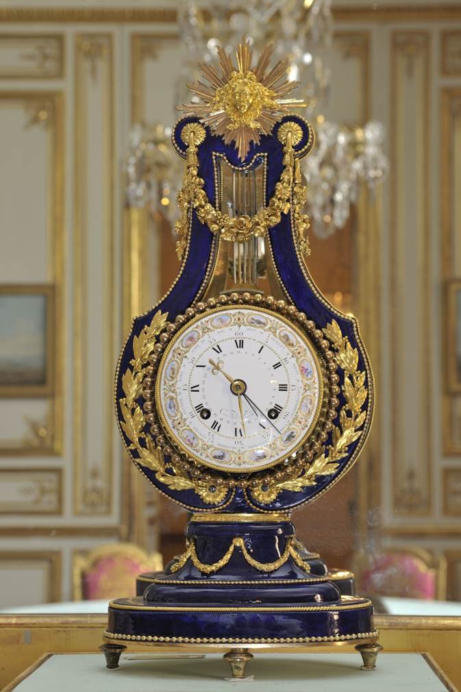 La pendule-Lyre en "beau-bleu" de Sèvres, spécialité de Courieult :
